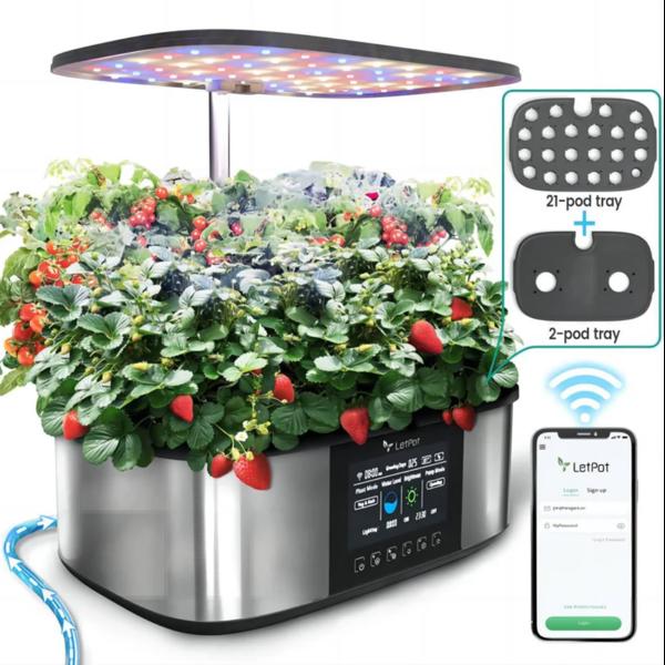 LetPot Smart Drip Irrigation System - Auto watering by setting up the watering cycle and interval. Or completely customize the watering interval. Monitoring water level and sending water shortage alarm.